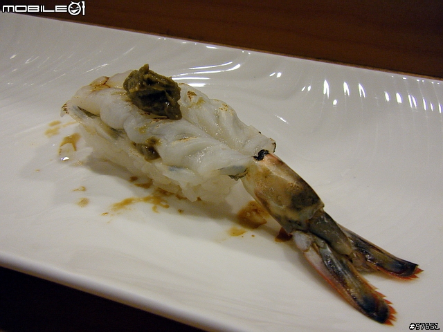 草蝦 佐松葉蟹糕:蝦肉口感好,但滋味還是上頭的蟹糕是引領這一貫的主軸~