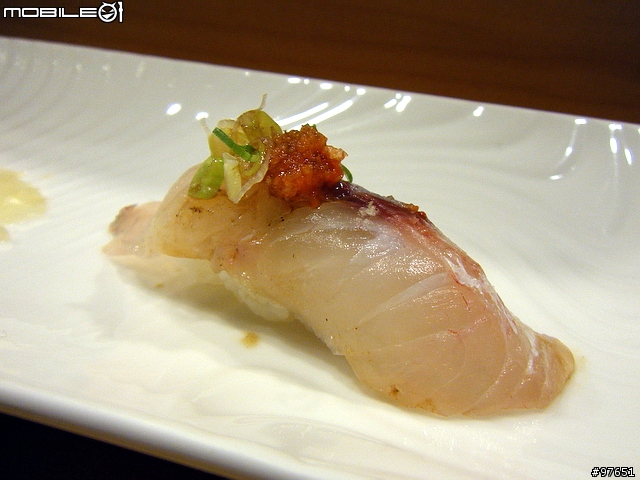 尖梭魚 佐蔥花辣蘿蔔泥:葉子真得標準的重口味一族,這一貫,若非上頭的蔥花蘿蔔泥,還真得不識滋味。畢竟,白肉魚的氣質,就是跟葉子不是那麼熟稔。