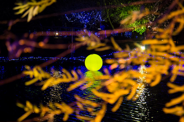 排列成一個大圓球體,光源為省電的LED燈,具體實踐環保理念和永續精神。