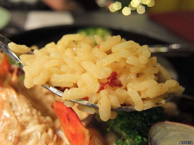 主廚秘製豪華海鮮燉飯:說豪華,是有點誇張,按葉子取名,就是綜合海鮮燉飯吧!?配料鮮度不差,但亮眼的是燉飯本身,飽滿著鮮味,略帶辣度,讓胃口大開