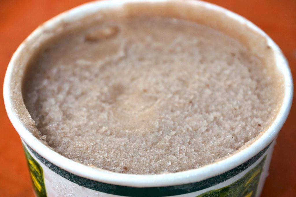 香蕉冰淇淋 NT. 40,第一眼看到這顏色以為老闆拿錯,後來再三確認是這個樣子沒錯。吃起來像是香蕉放久了之後,果肉變成比較深色的味道