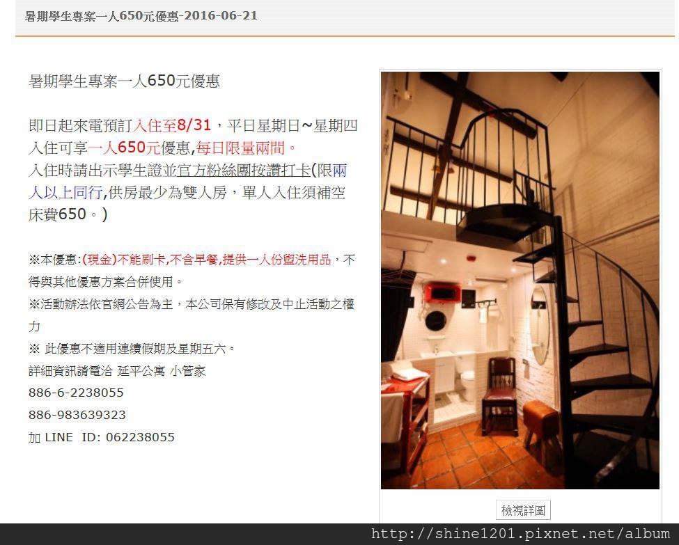 【貼心提醒】2016/8/31前周日~周日持學生證享有入住一人只要$650喔