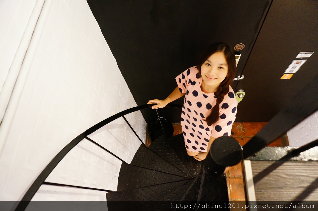 房內復古風螺旋樓梯除了增加視覺美感以外,也除去一般樓梯占空間的問題