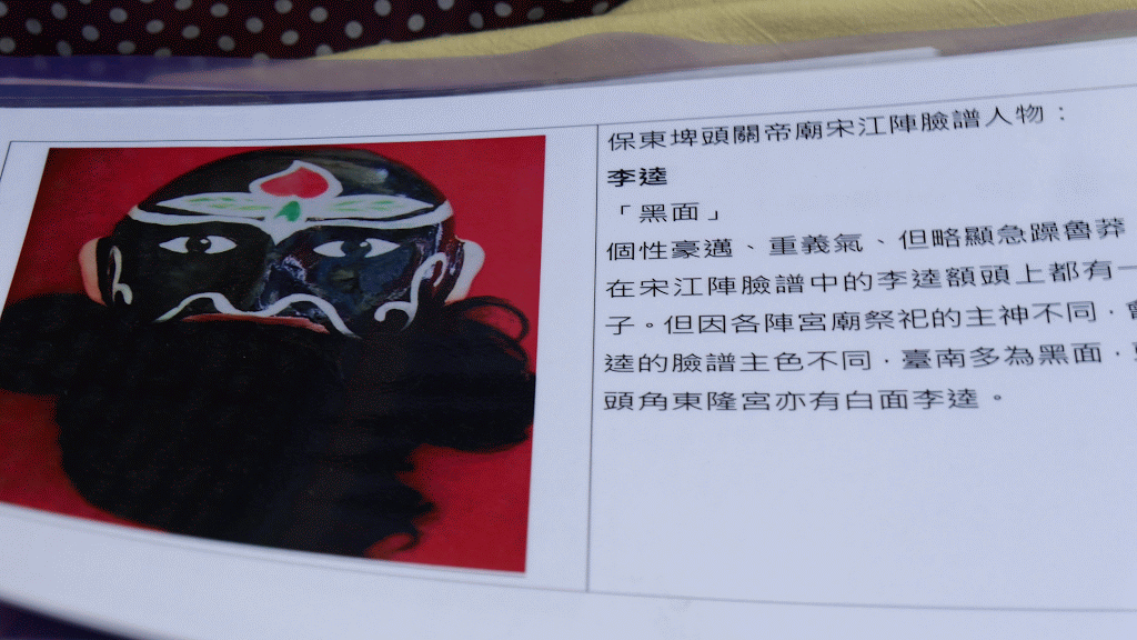 ▲許老師將在地廟宇民俗藝陣 “宋江陣” 打面臉譜陣頭特色,結合植物染(取材咖啡 荔枝 等)融入創作,從事在地文化創作有12年之久,並成立一朵花文化創意工作室持續推廣在地文化。