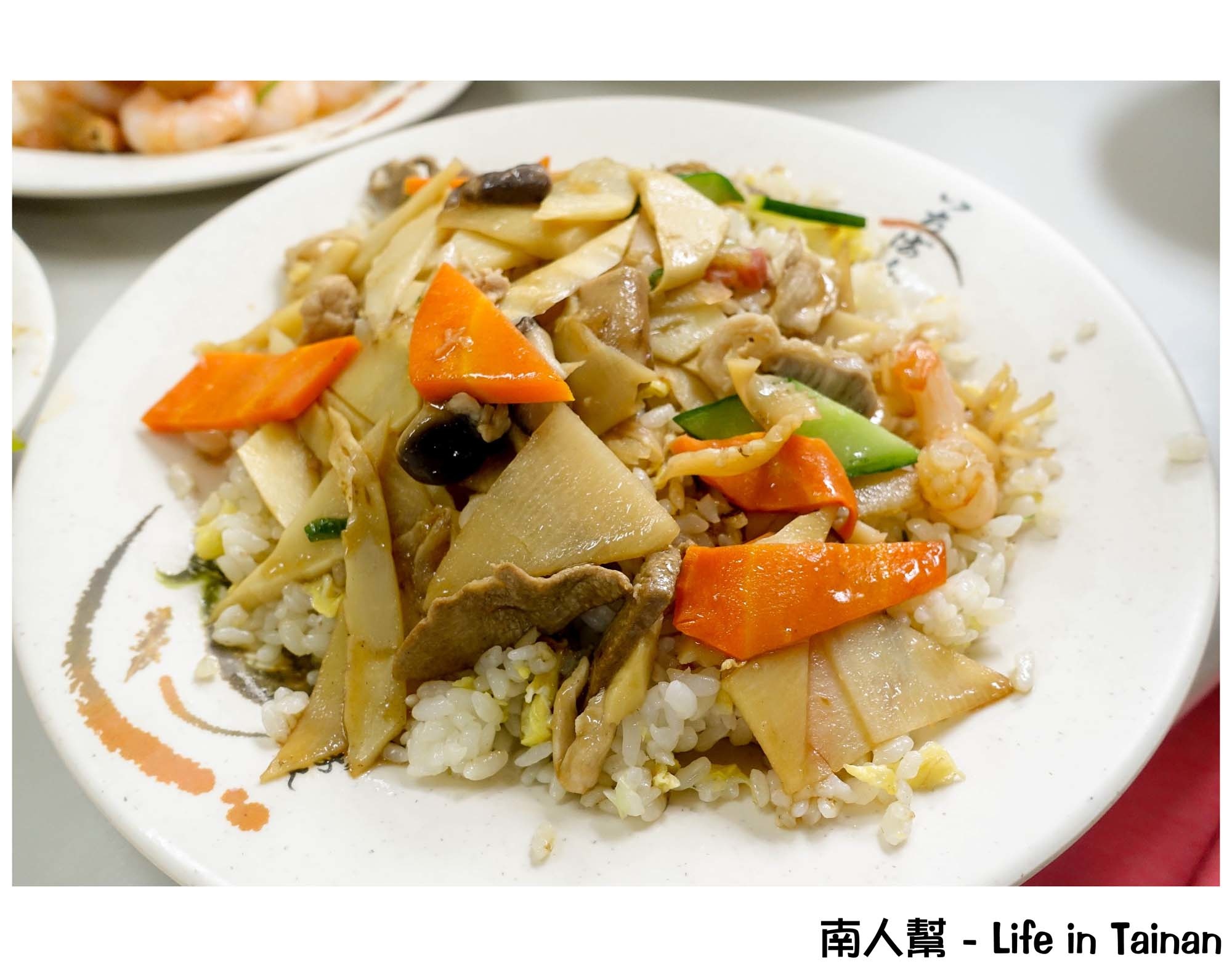 加了豬肝、蝦仁、筍塊、紅蘿蔔、小黃瓜等料去炒,簡單來說就是什錦麵的炒飯版,每一個食材都切的滿大塊的,這樣吃很滿足。