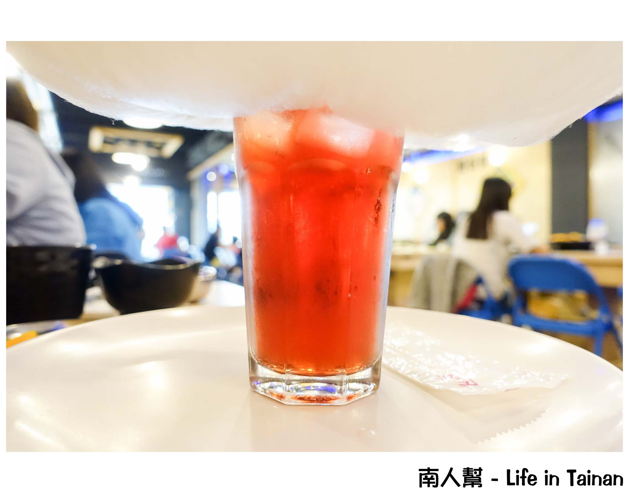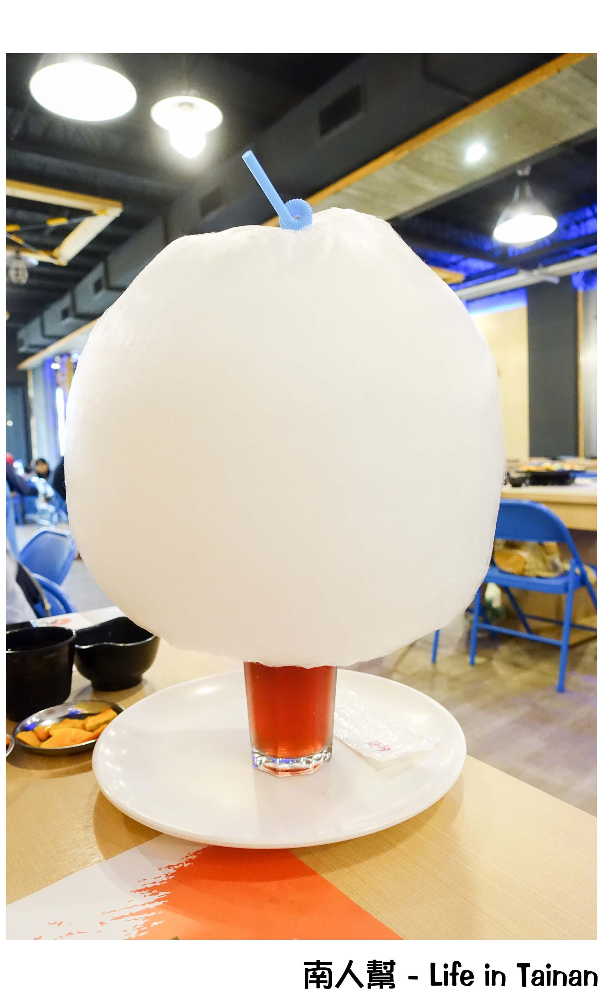 這杯飲料的這顆棉花糖完全是比一個男生的臉還要大,送上桌時我們家樂多也嚇傻了,可能想說這個龐然大物是什麼,棉花糖可以用手撕著吃,如果覺得飲料不夠甜的,也可以把棉花糖加入飲料中,我們喝的這杯是洛神葡萄,葡萄味中帶著洛神香。(店員說現在周年慶,飲料有半價優惠)