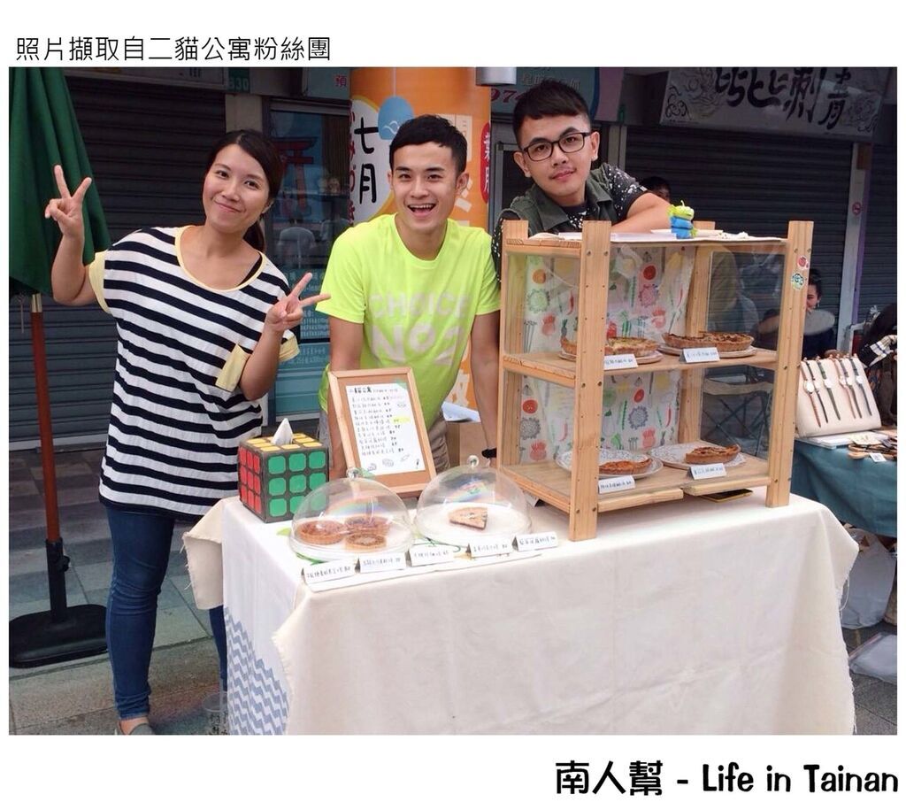 『二貓公寓』是位於安平的一家烘焙工作室,平常在確認訂單後才開始手工製作,所以基本上是三個工作天才能夠吃到,但想不到在這個市集就可以現場買到,因為二貓公寓會到現場擺設,他們家的強項是鹹派和甜塔為主,最讓人印象深刻是辣味香腸鹹派和藍莓波蘿酥塔,好期待小編愛的這兩樣也會出現在當天的市集,就讓我們拭目以待吧!
