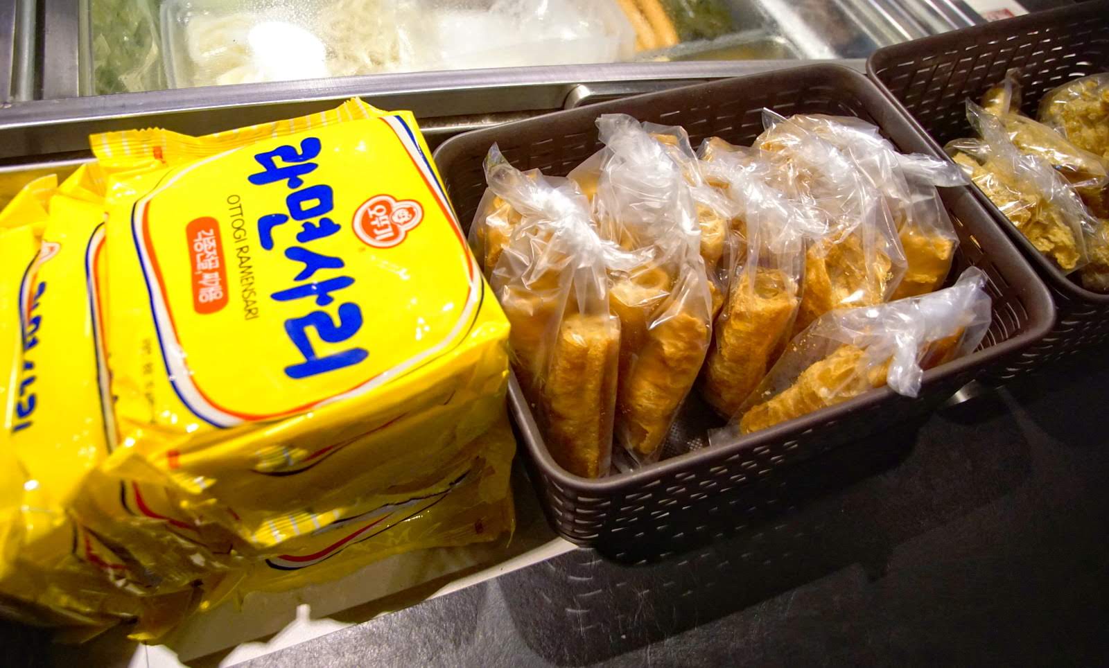 底下放著韓國不倒翁Q拉麵、油條、豆皮等食材