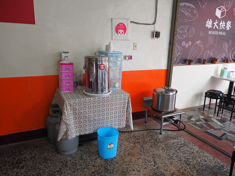 店內有提供飲料與湯品, 外帶與內用都可享用