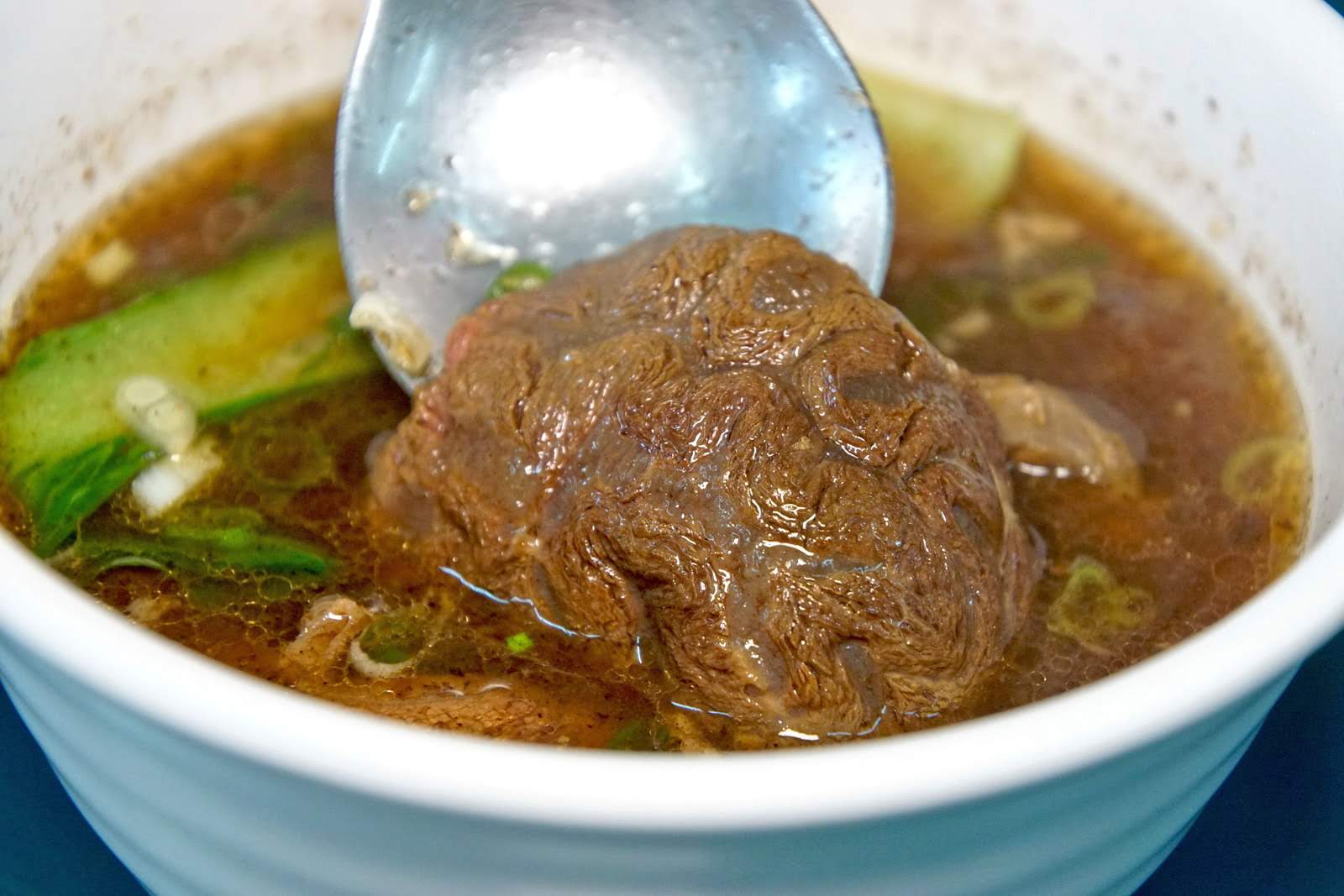 牛筋的部分已經滷到十分軟爛,即使牙齒不好的人都能輕易入口;牛肚則帶著一些嚼勁,三種牛肉的口感,一碗就可以滿足