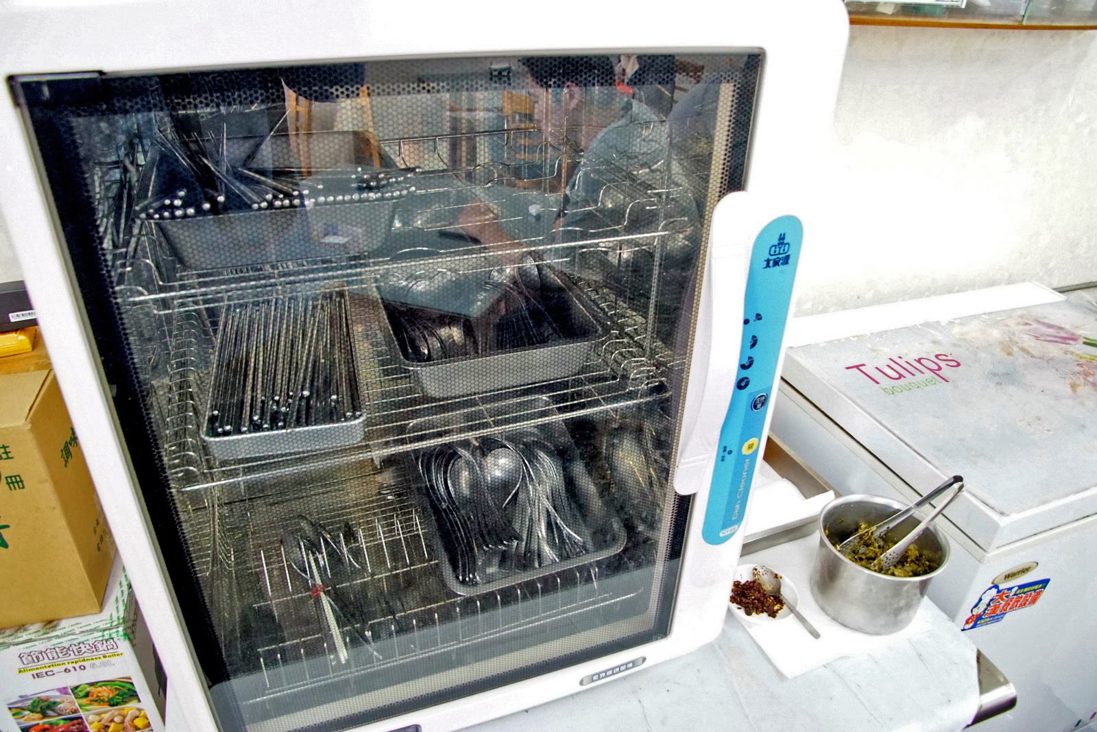 餐具使用的都是金屬材質,而且一律放置在烘碗機裡面讓客人自行拿取