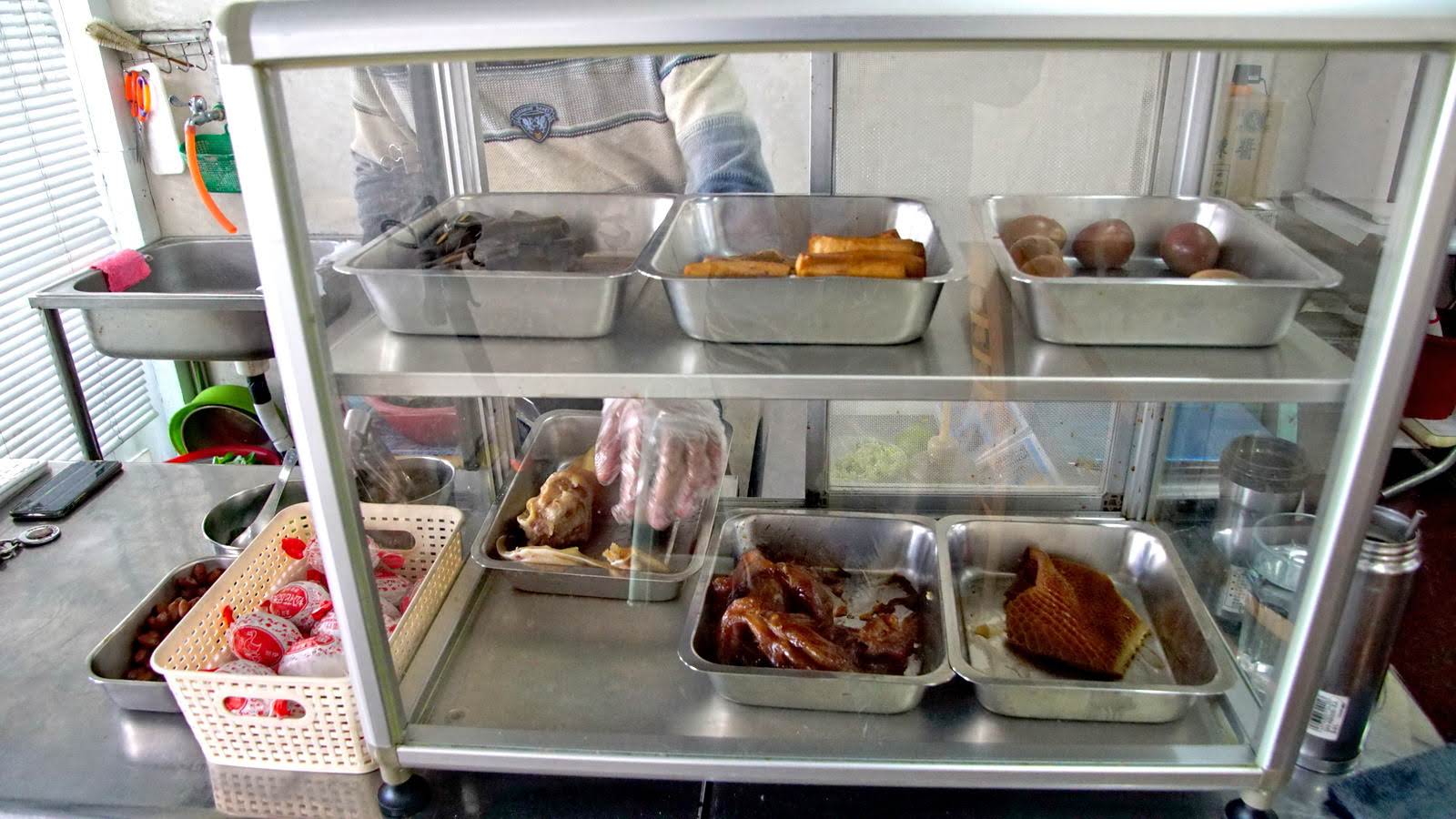 入口處左邊是滷味區,雖然提供的滷菜種類沒有一般的麵店多,但常見的海帶、豆干、滷蛋倒是都沒少,就先各點了一些來墊墊肚子