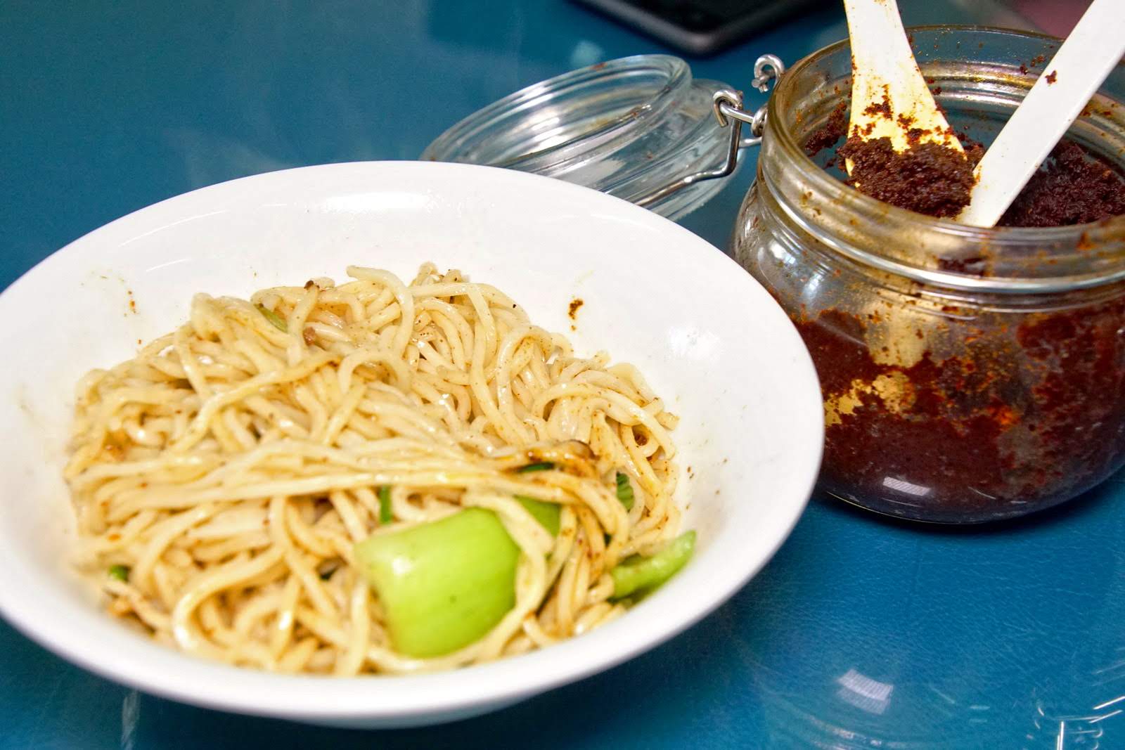 雖然老闆說牛油辣椒加湯最棒,但我們把它加入拌麵中,沒想到香氣又更提升了一個層次,而且吃起來也更夠味了