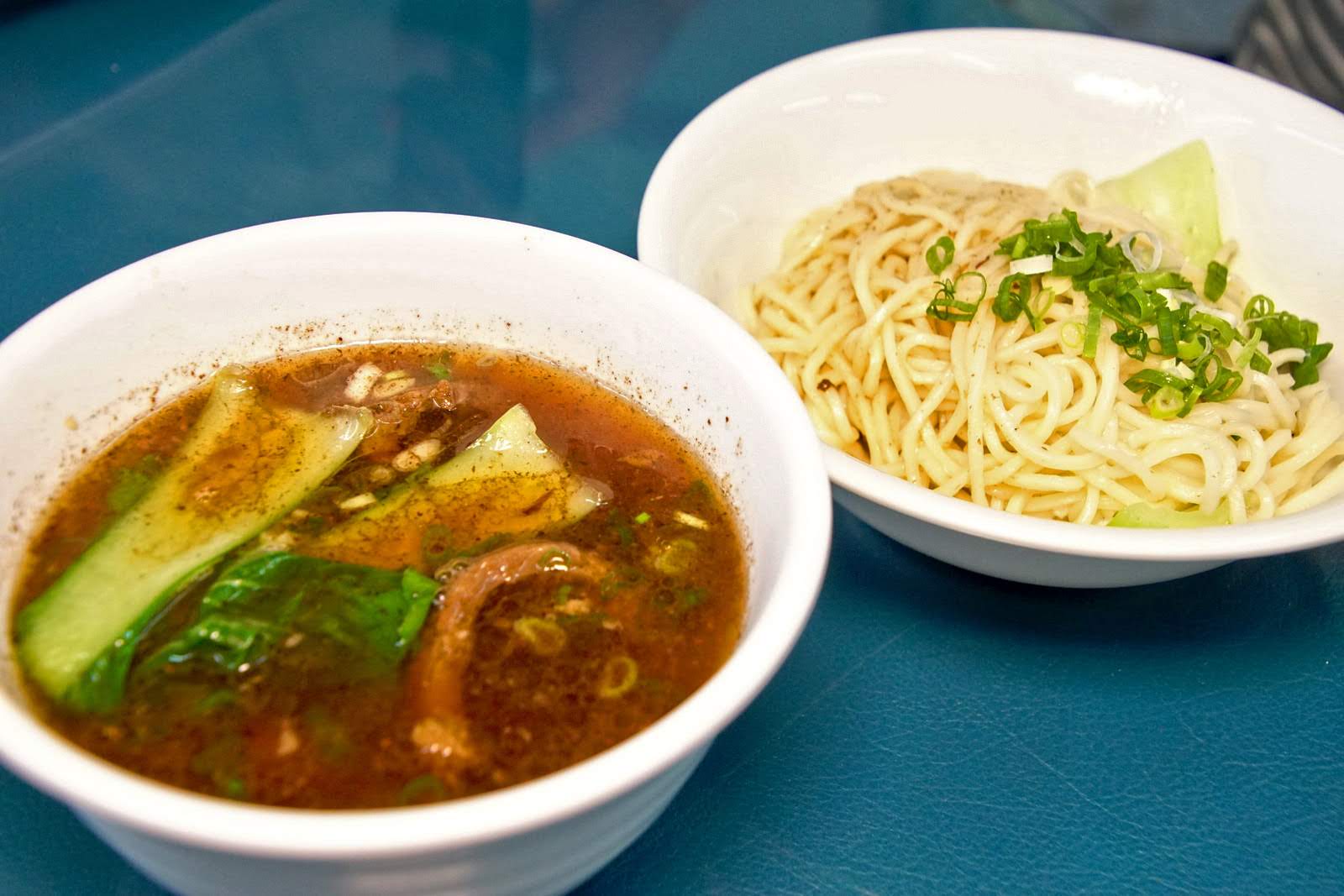 拌麵的麵條選了細麵,香味聞起來就令人垂涎三尺。不過,吃起來的味道略淡,可以加一些牛肉湯再拌幾下會更好