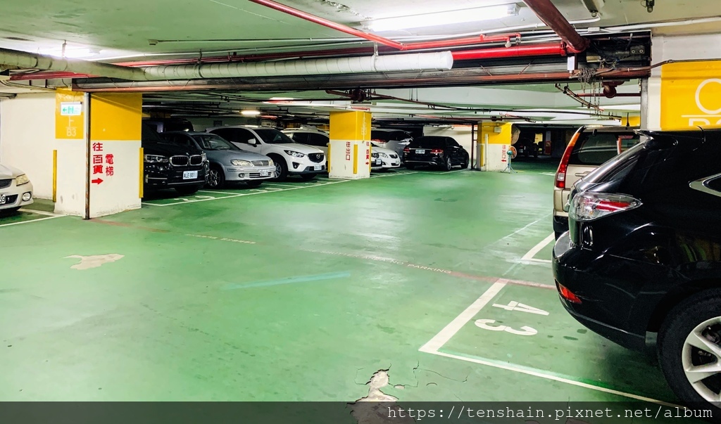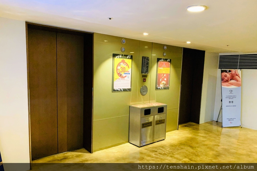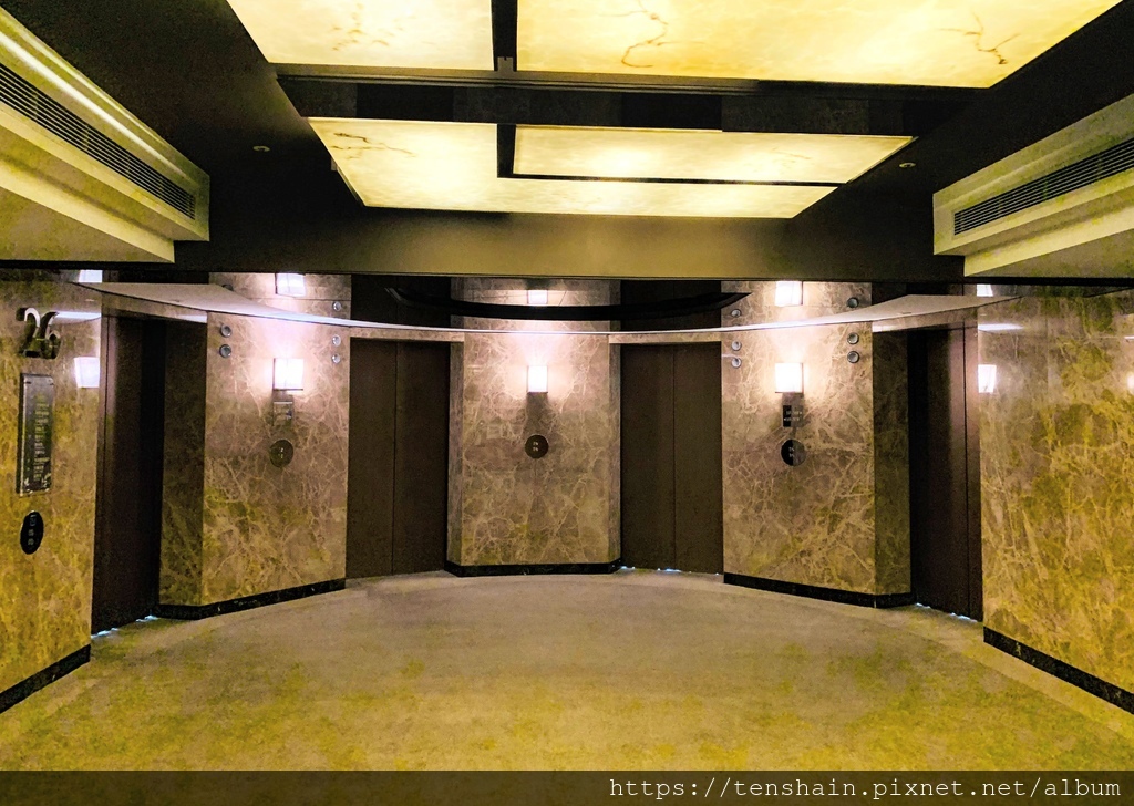以五星級飯店的標準來看,停車場的梯廳有點樸素。