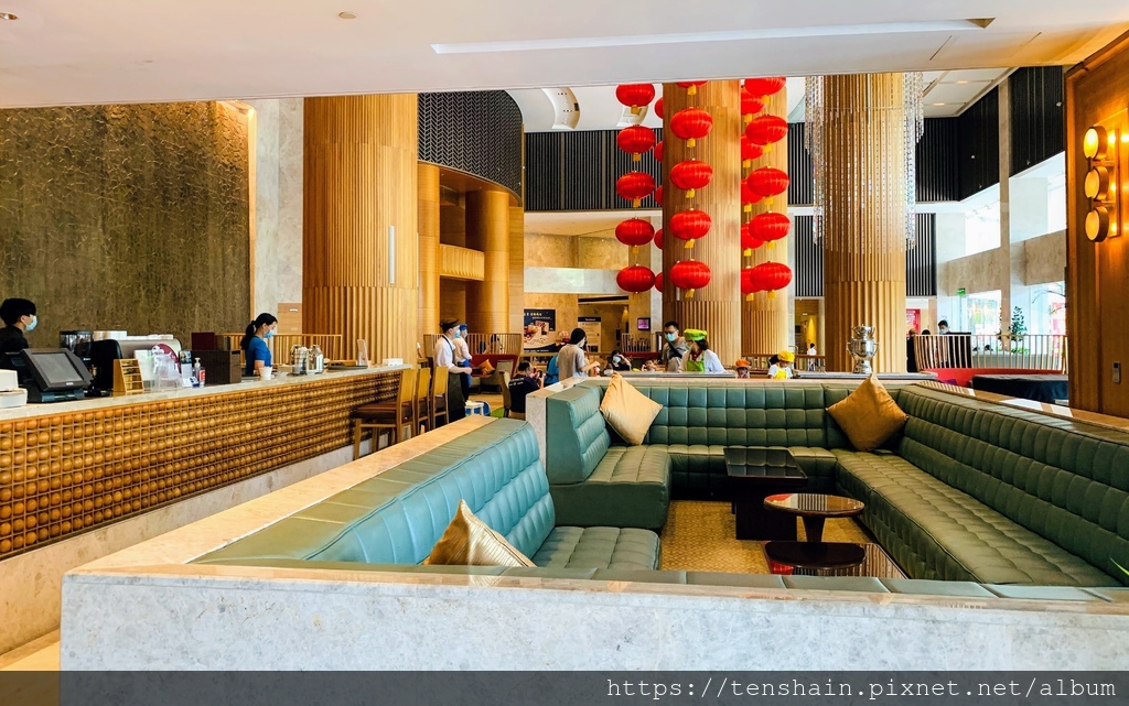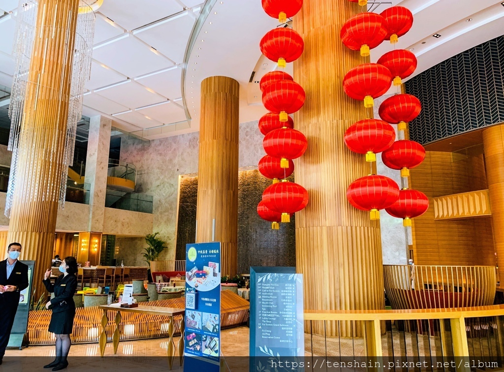 挑高十米的大廳,黃金色的圓柱、圓形的木柵、圓形的燈籠、圓弧形的天花板飾條、圓桌...隨處可見以"圓"為元素的設計概念,在古典與現代之間,傳遞一種圓滿的意象。這座氣派的大廳曾於2009年榮獲美國最具聲望的Gold Key Award頒發第29屆「最佳大廳設計獎」,真的是很不簡單!