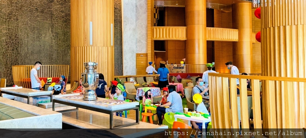 現在飯店間競爭激烈,為了吸引更多親子客源,各大飯店無不挖空心思推出各種活動,香格里拉台南遠東國際大飯店當然也為小小房客設計了許多不同的活動。我們正好遇上小小廚師營上課的時間,看著小朋友邊玩邊吃,旁邊忙著幫小寶貝拍照的父母親一定非常開心。