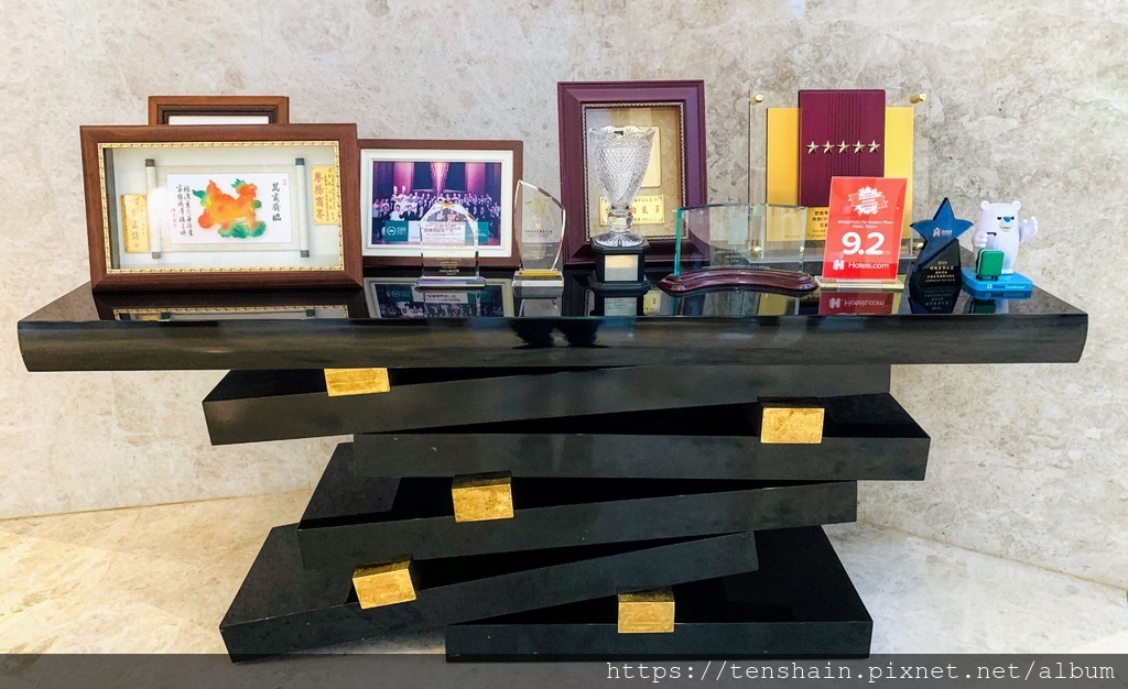 香格里拉台南遠東國際大飯店得到的各種殊榮和各方的肯定很多,羅列在大廳一角這個桌上的就有交通部觀光局的五星級飯店認證;2020年在HOTELS.COM評價高達9.2分(滿分10分),榮獲最受旅客歡迎獎;2016 年 Travel Awards 金獎;TripAdvisor之"2011旅行者之選獎"台港澳地區第一名...等等。