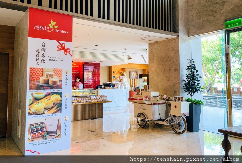 品香坊位於一樓大廳一角,每日 8:00~20:00 販賣各式新鮮出爐手工麵包、糕點、三明治、輕食等,也有精選商品可供選購。