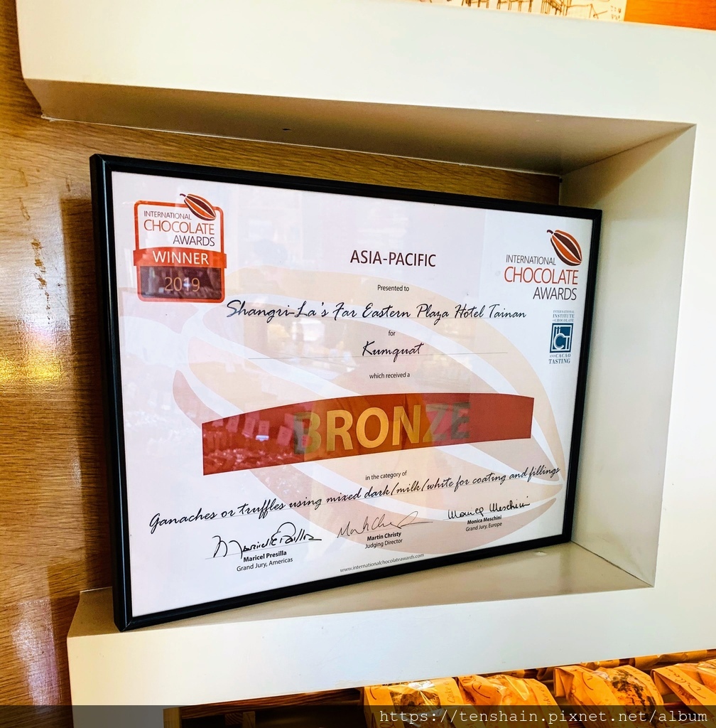 品香坊販賣的巧克力很厲害,是2019年世界巧克力大賽亞太區的得獎作品,分別是金獎烏龍柚子、銀獎金棗蜂蜜、銅獎家鄉風味。幸運的是,入住豪華閣的貴賓,在 Happy Hour 時間就可以開心享用。