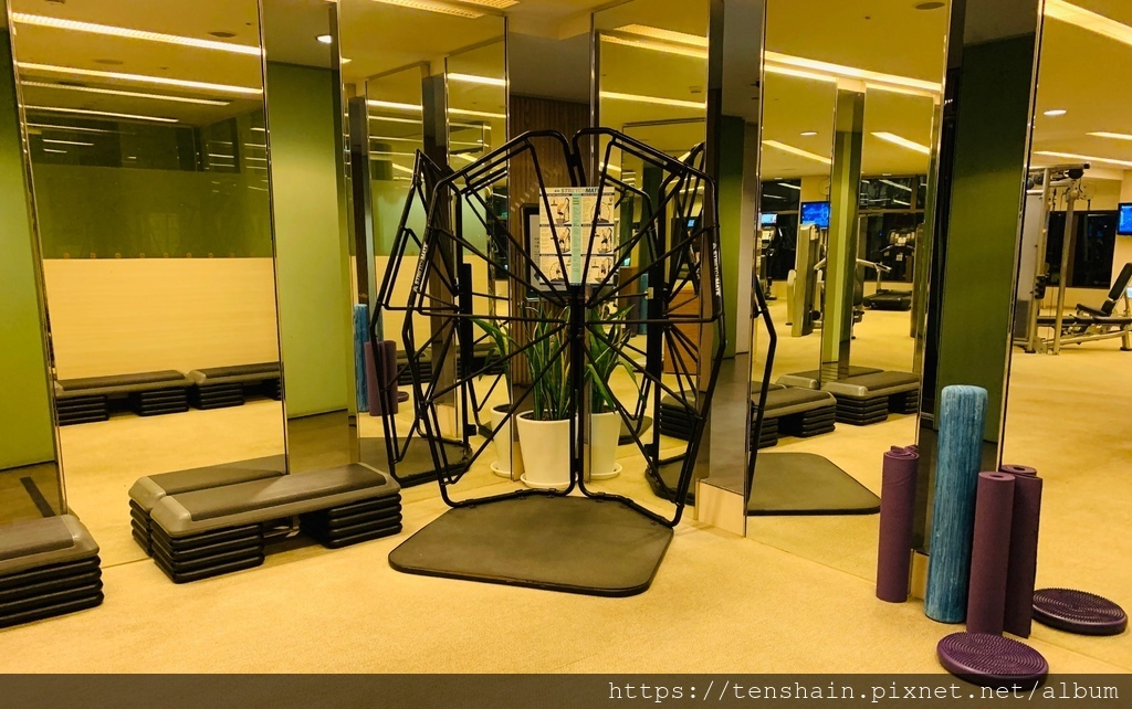 這個身體伸展器也是第一次在飯店的健身房看到,可以幫助你伸展僵硬的肌肉,非常好玩。一旁還有一些瑜伽器材,想做做瑜伽也沒問題。