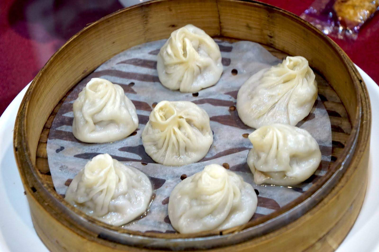 肉餡應該是使用了雞肉,吃的時候雞汁充滿了小籠包的底部