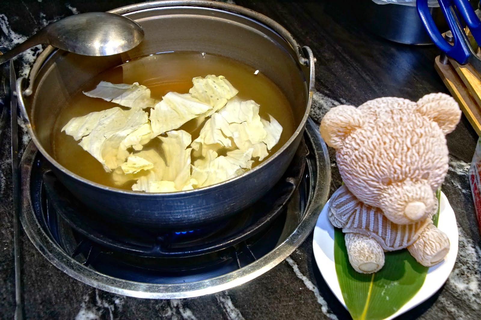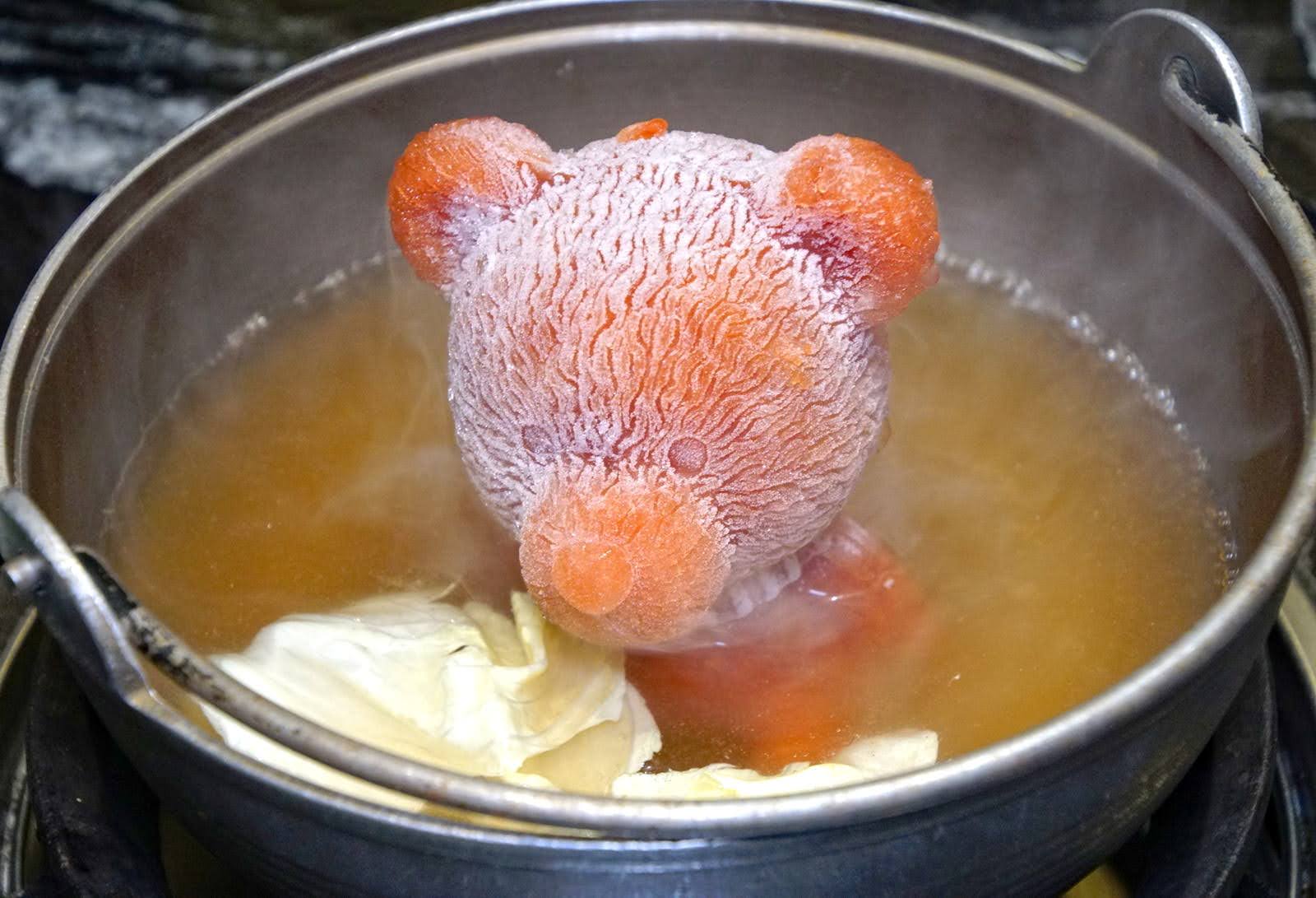 下鍋的方法也很妙,就是把熊直接放到火鍋裡面煮