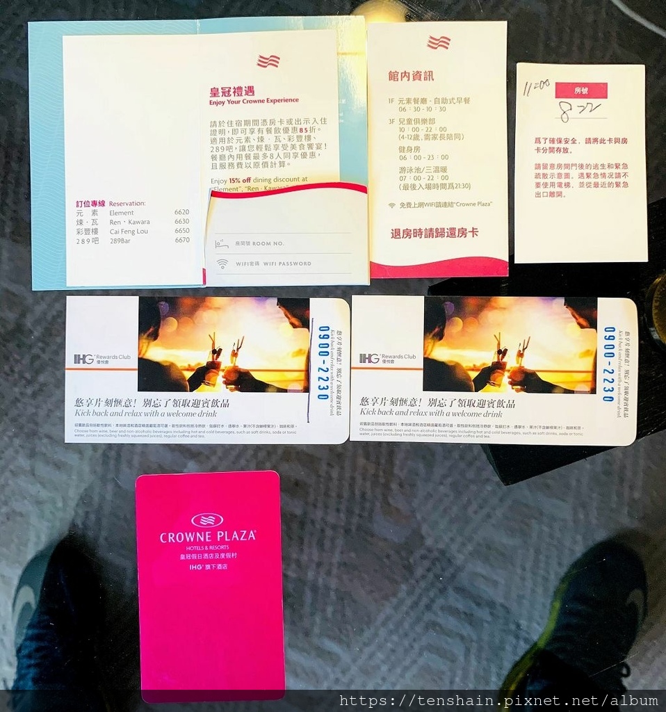 拿出 CHECK IN 時櫃台給我們的東西,比較重要的有兩張房卡、兩張 289吧 的飲料兌換券。