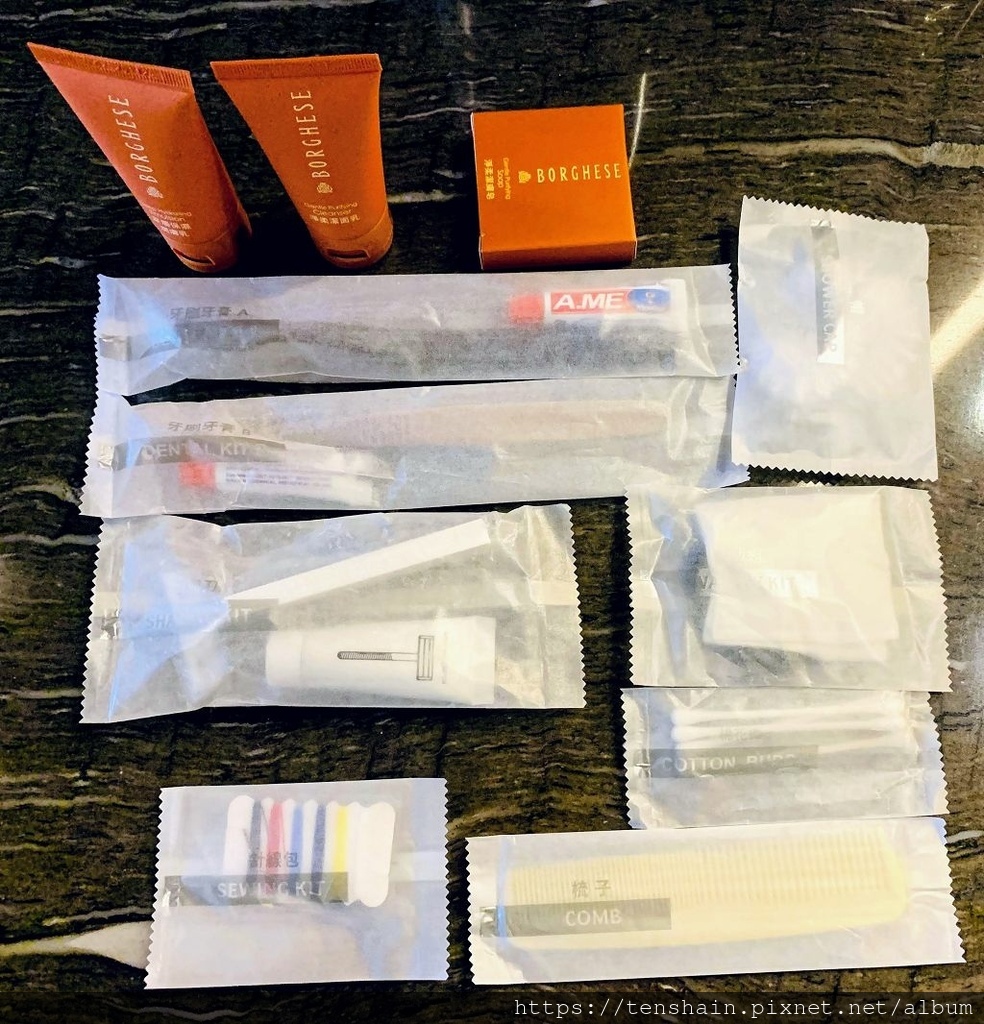 漱洗備品除了義大利貝佳斯SPA美膚名牌的深層保溼潤膚乳、淨柔潔斫乳、淨柔潔膚皂外,其餘的東西都很平常。