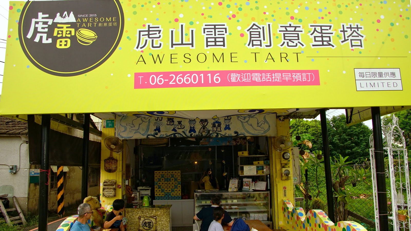 回味完了保安工寓咖啡老闆的精湛手藝,大夥們依舊意猶未盡。於是,我們決定找個在地的甜點來滿足一下第二個胃。拜著Google大神所賜,發現了前陣子在社群網站上一直被它洗版「虎山雷創意蛋塔」
