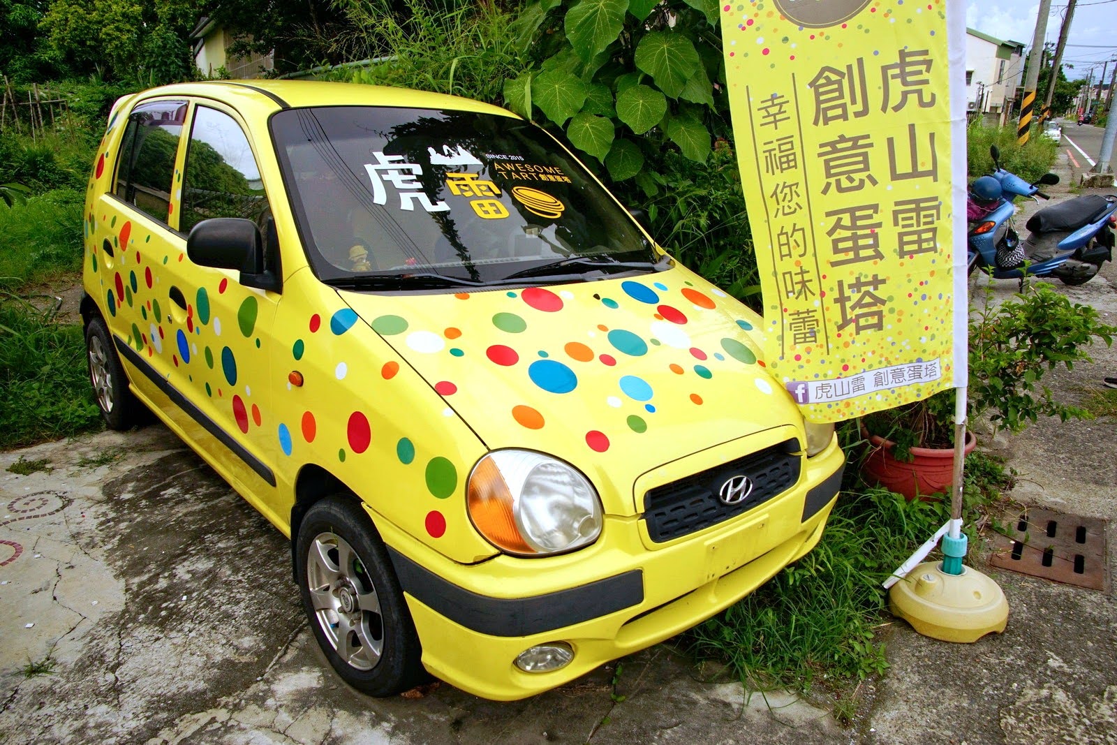 當我們順著仁德區文賢路一段,快接近省道時,遠遠地就看到了虎山雷創意蛋塔顯目的黃色招牌