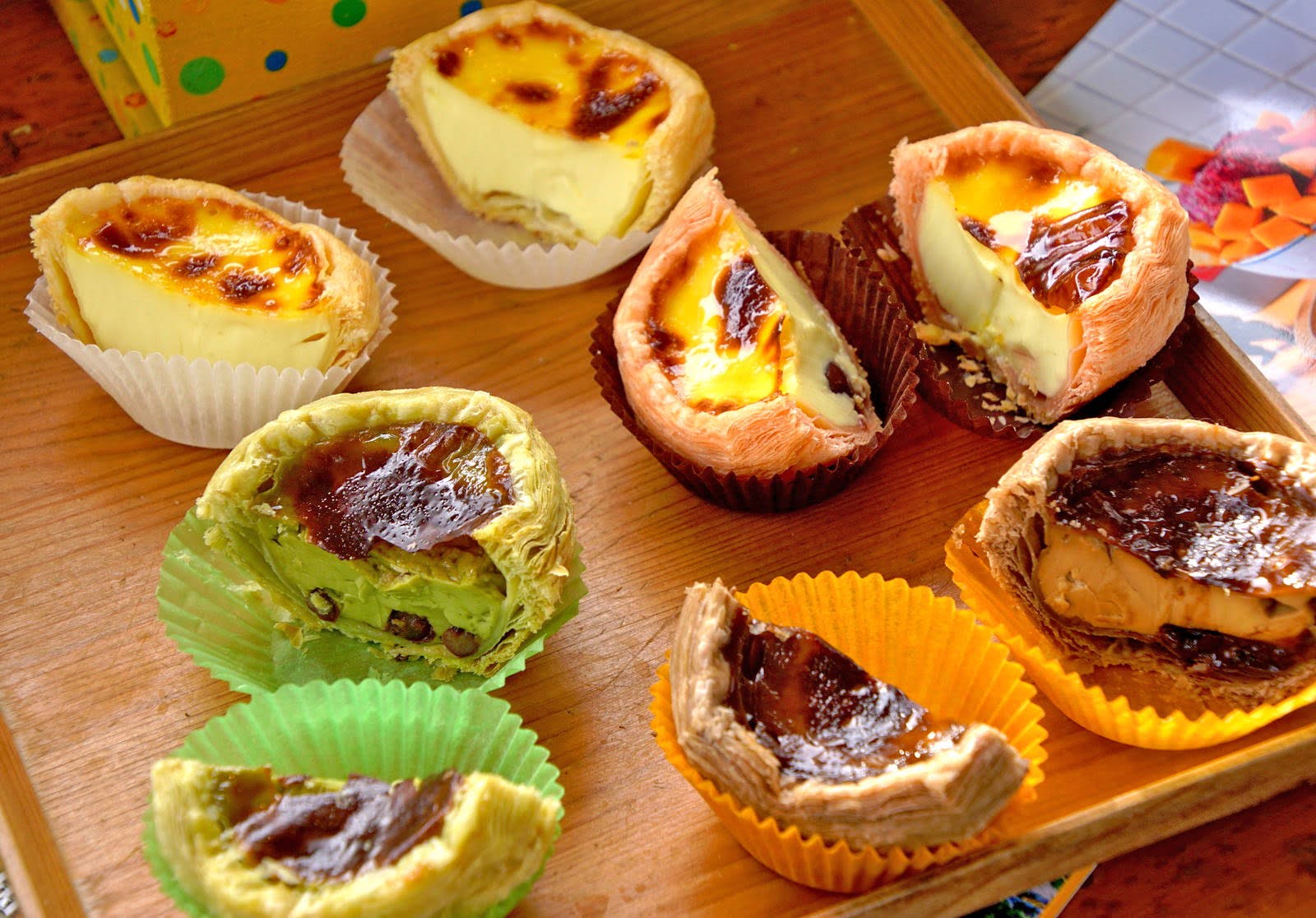 蛋塔擺放在店門口的玻璃櫃中,想要吃什麼口味都可以直接向店員詢問