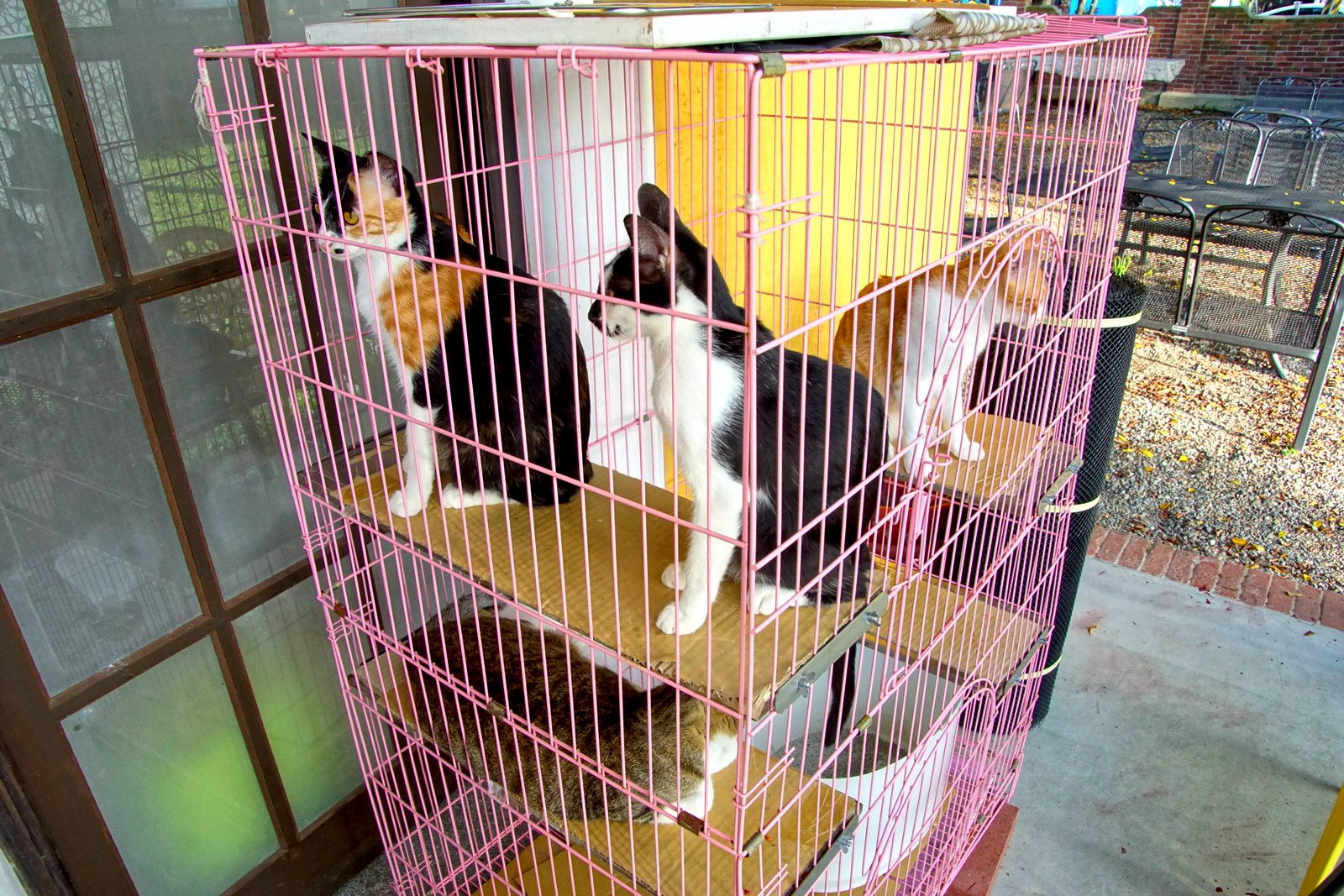 突然間,懶洋洋的貓咪們都活絡了起來,原來是放飯的時間到啦!