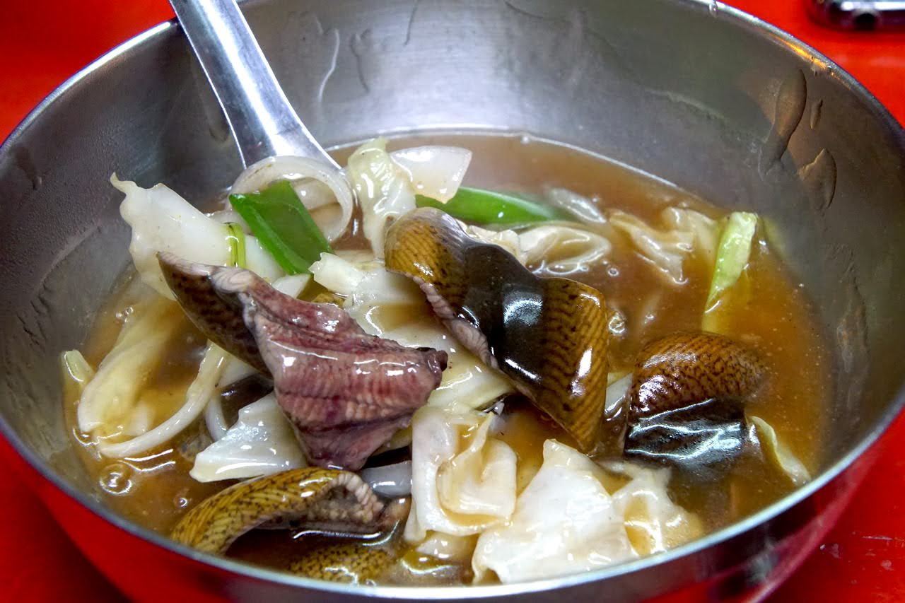 鱔魚焿,以勾芡製作的鱔魚焿。比起乾炒來說,口味再稍微甜了一些。
