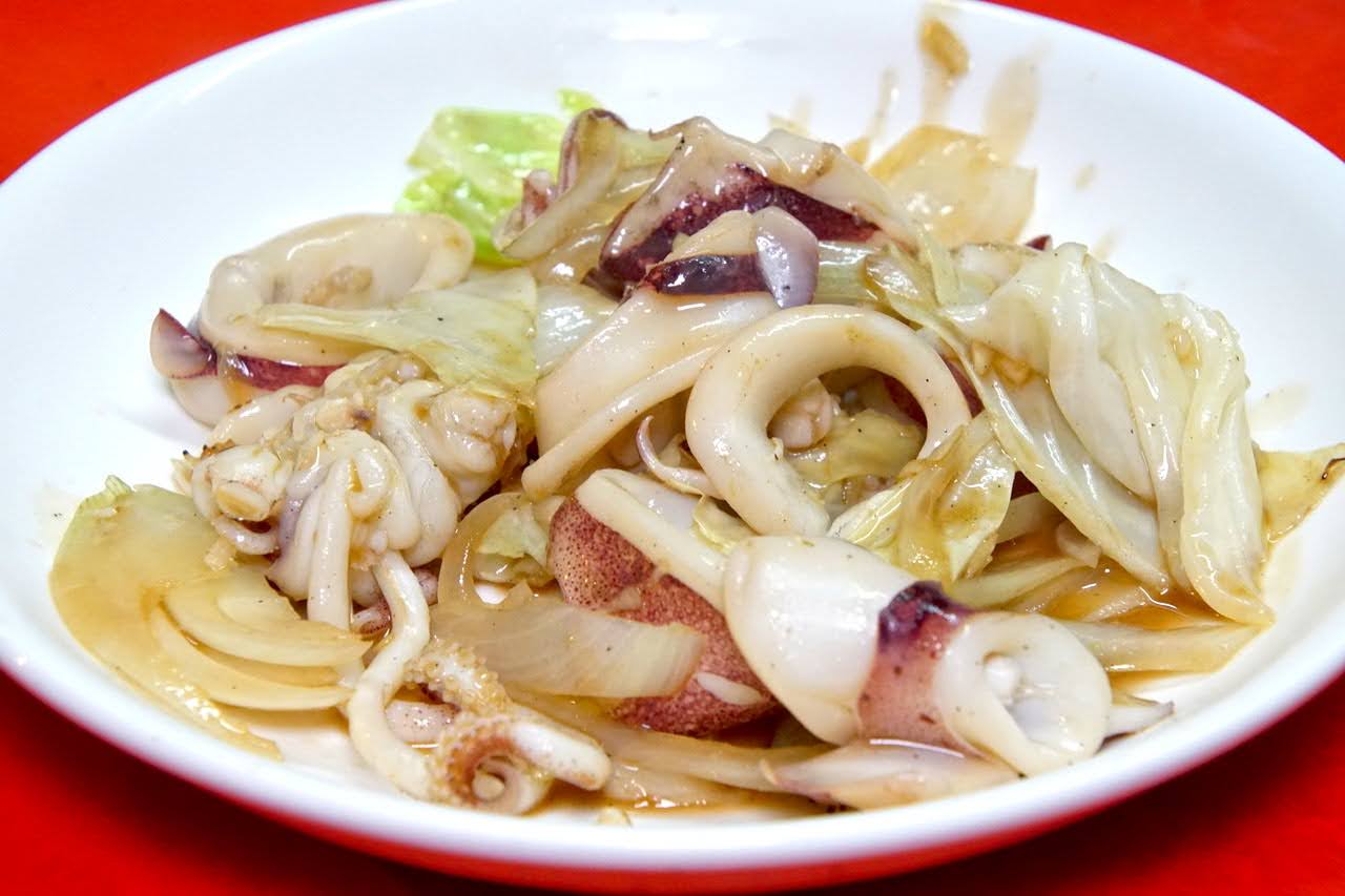 乾炒花枝,不敢吃鱔魚的人,也可以點這道炒花枝。吃起來除了鱔魚片換成了花枝之外,口味幾乎如出一轍,搭配炒飯一起吃也十分合適喔!