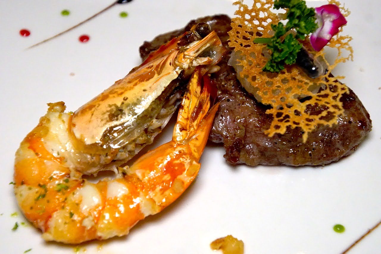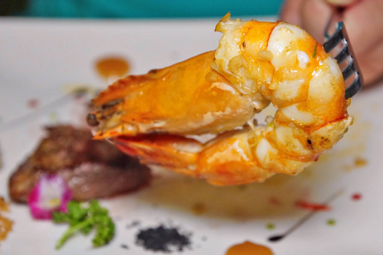 海陸雙拼(菲力&大蝦),對照菜單應該是頂級紐西蘭菲力與野生海虎蝦的組合。