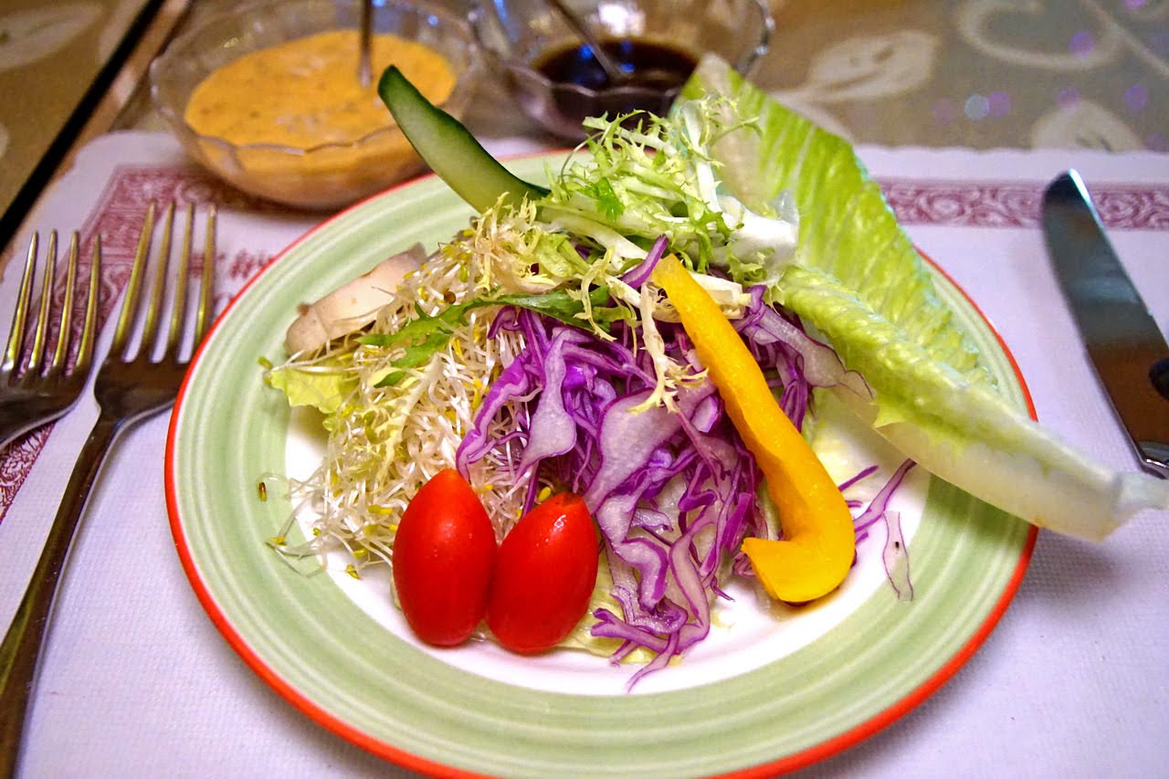 沙拉提供了特製千島醬與油醋醬,當然也可以一直續加。