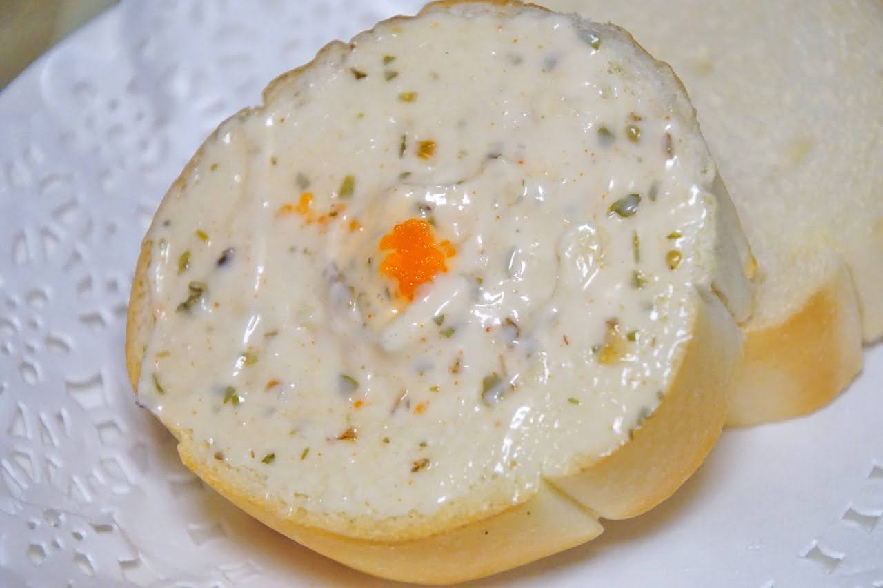 原來抹醬另外附了,上頭還撒了一些紅色的蝦卵點綴。