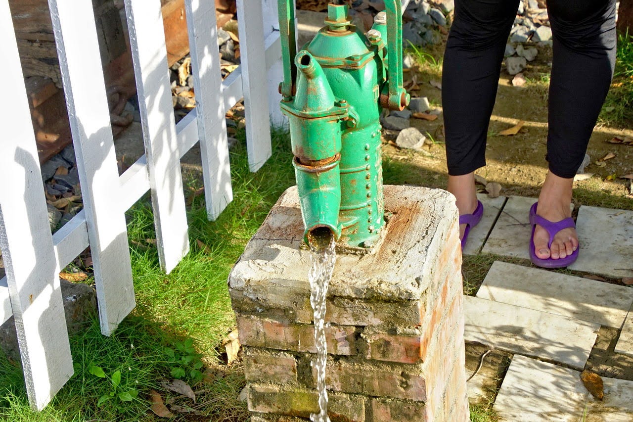 本來以為這個手壓泵浦只是裝置,走近一看才發現真的可以使用。