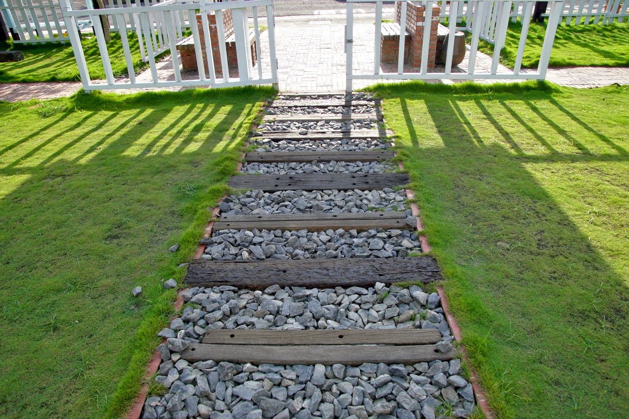 通往月台與鐵軌的道路,以木棧道與碎石子鋪陳。