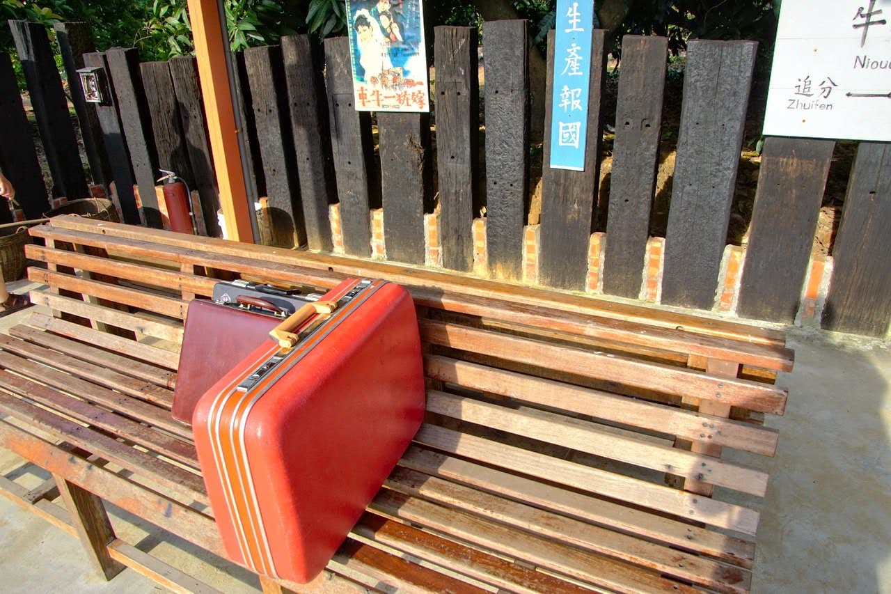 月台座椅上刻意放置的行李箱,帶著一絲絲離別的哀傷。