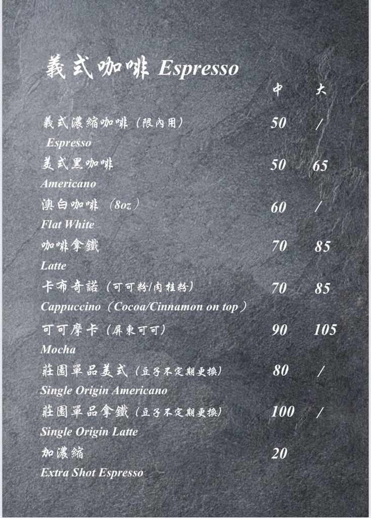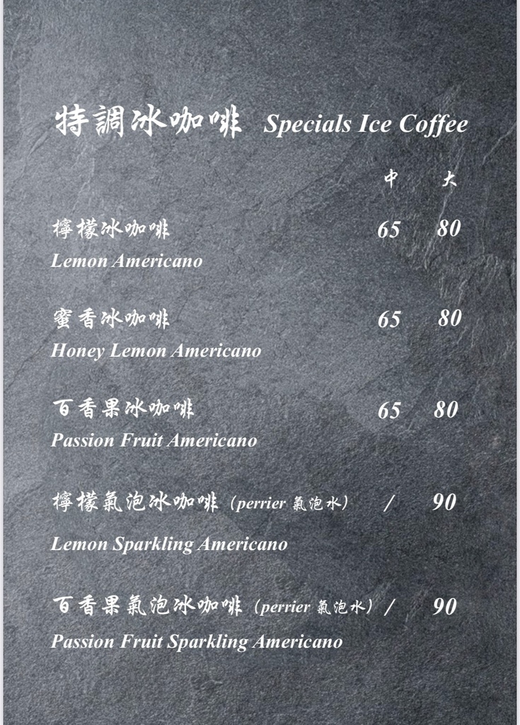 RW Coffee菜單 (來源:RW Coffee FB粉絲頁,2022.03)