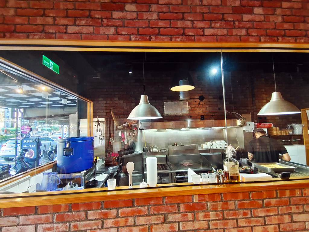 ▼進到用餐座位區前,會先經過丹妮牛排的烹飪區,透明化廚房一切一覽無遺,代表衛生整潔控管得很好,才敢將廚房展示給大家觀看