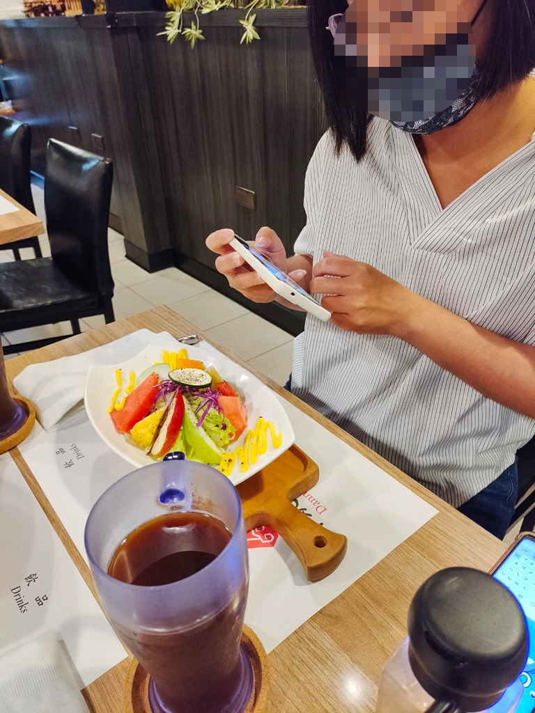 ▼以我吃過的沙拉附餐來說,這樣的擺盤也非常用心,色彩鮮豔、份量如小山,拍照起來非常好看,所以我朋友一看到就「手機先食」,打卡發朋友圈