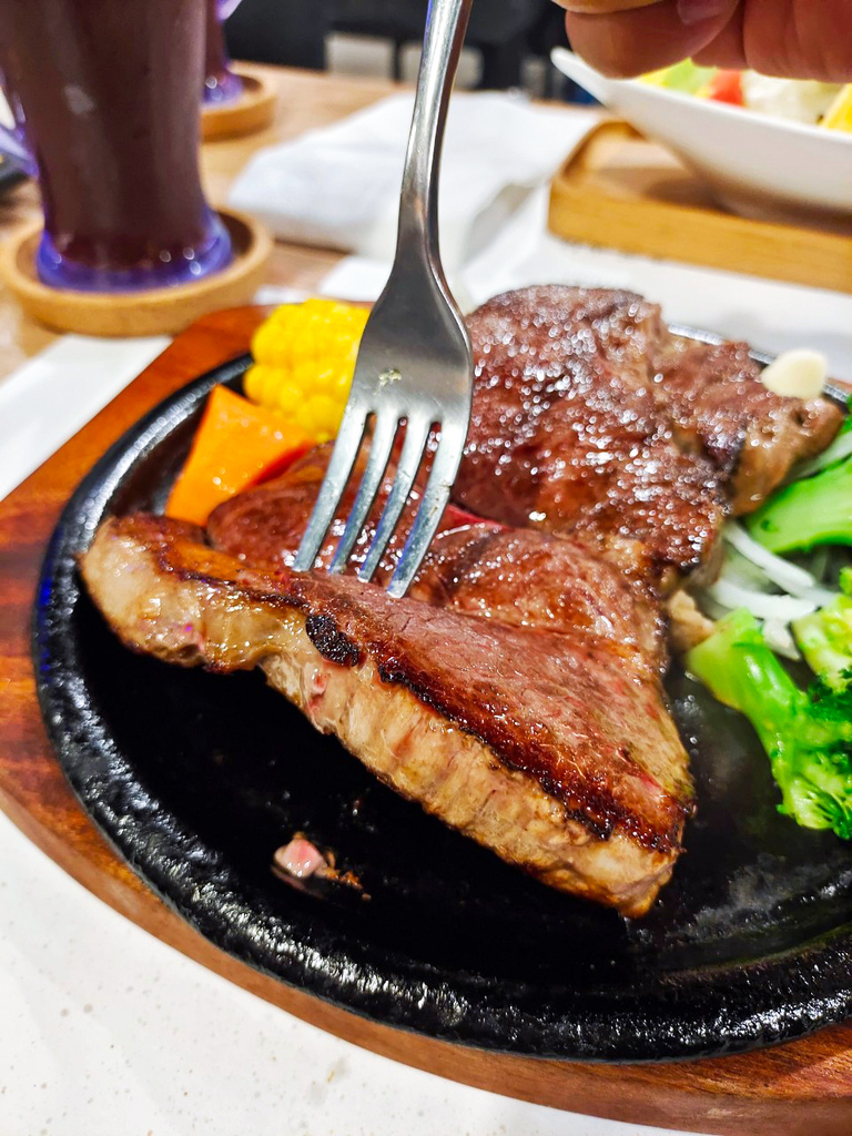 紐約客推薦大家可以點3分熟,因為鐵盤還有熱度,上桌後會繼續加熱,等到真正要吃,熟度可能已經落在5、6分