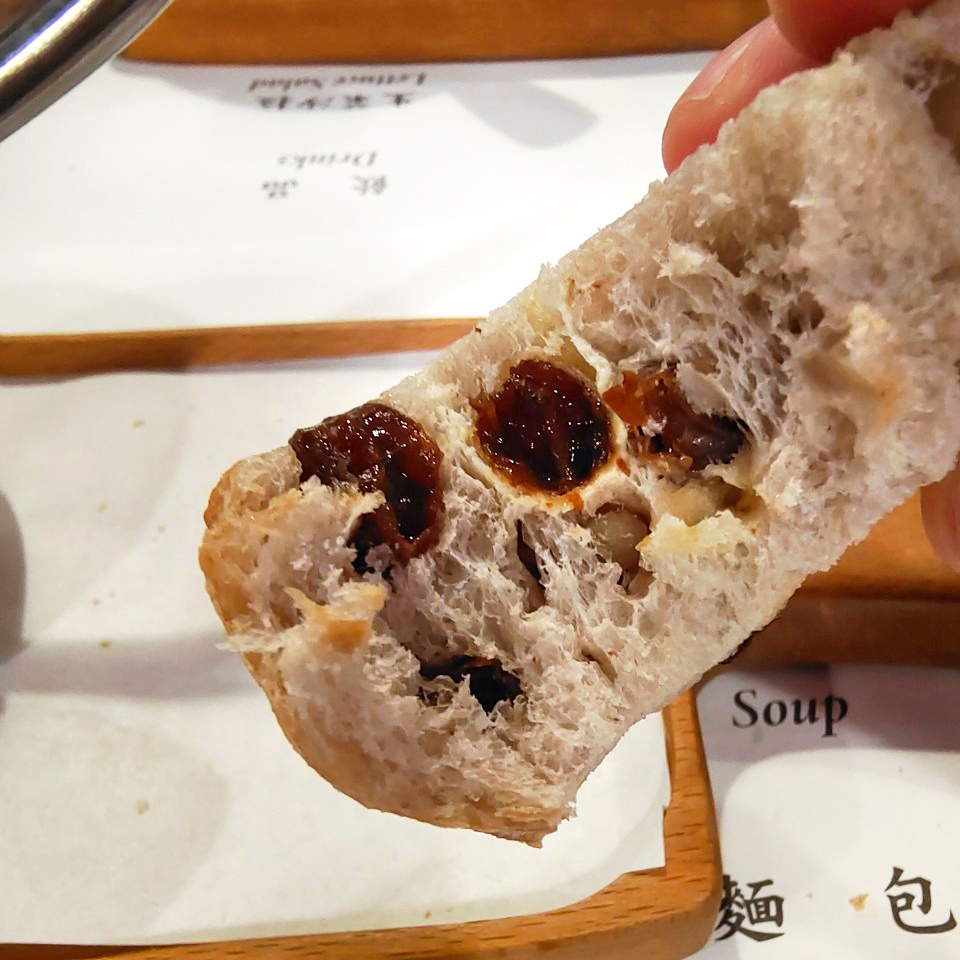 ▼葡萄乾麵包裡面的葡萄乾滿多的喔,吃起來很濕潤,吃完非常想讓人再來一片,但為了後面的牛肉大餐只好忍痛拒絕服務人員續用的問候