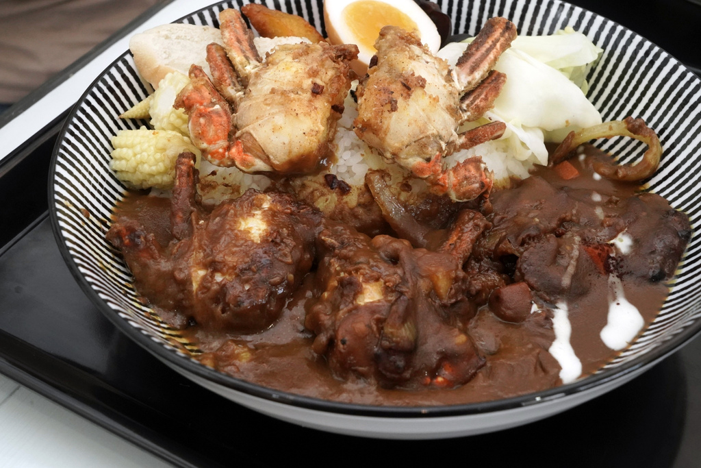 ▼龍蝦和鮑魚補貨中,所以我們點了澎湖小卷天婦羅咖哩飯、蟹老闆咖哩飯、廣島牡蠣咖哩飯,舒肥松阪豬咖哩飯