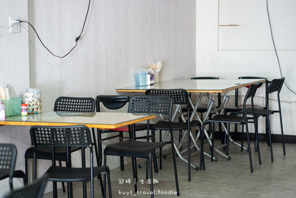 在簡約的空間裡,簡單擺放幾張桌子、椅子,共有4張桌子,近20個位子。