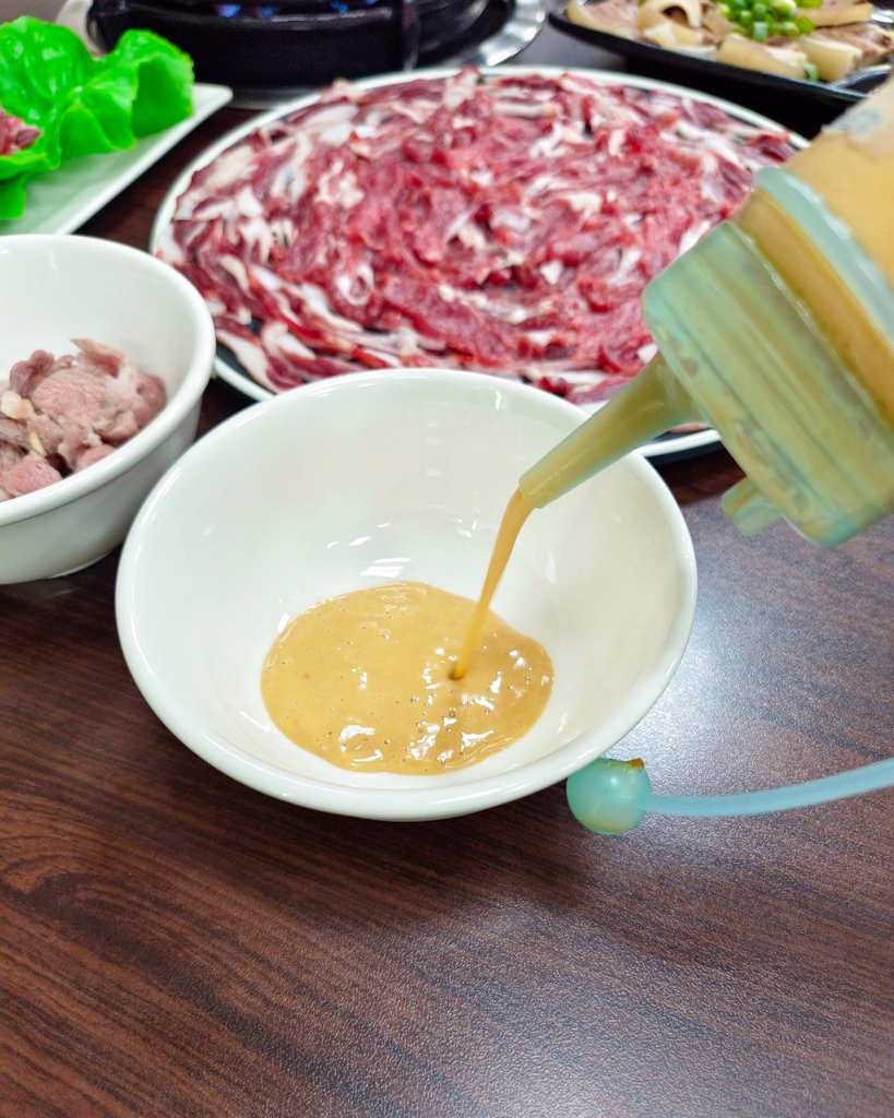 ▼豆乳醬必拿!鹹鹹的豆乳發酵味,和溫體羊肉非常對味