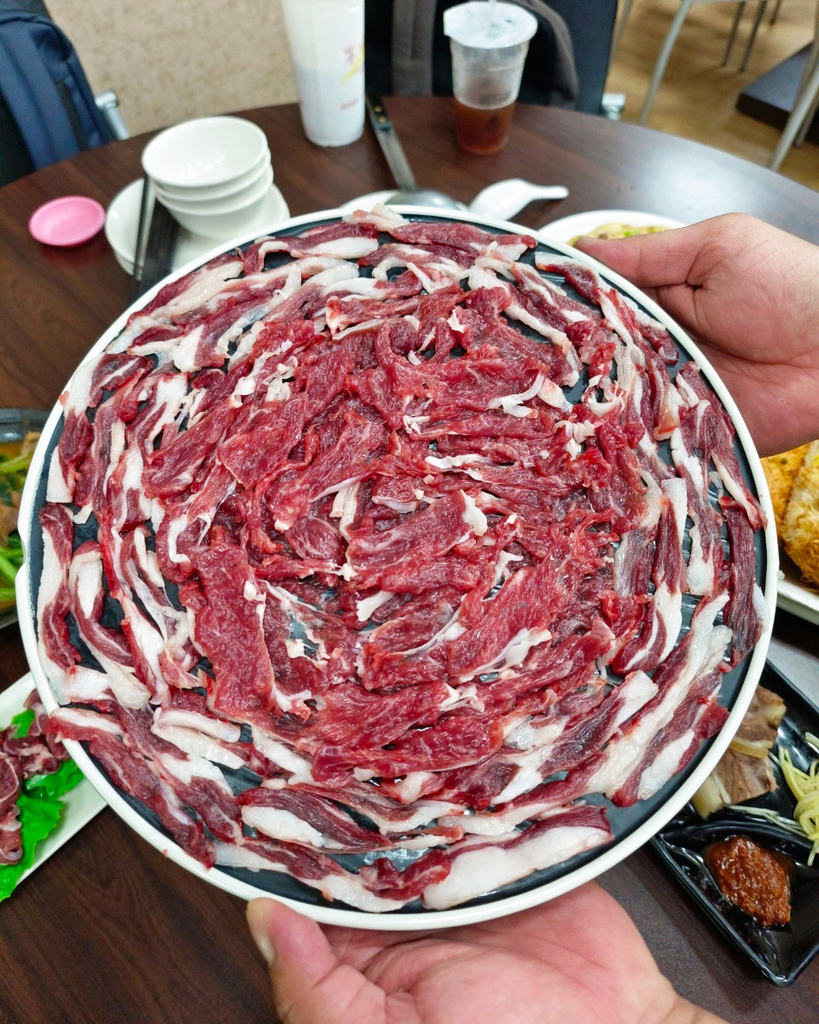 OH!這一大盤溫體羊肉,一端上來就是視覺震撼,肉量吃起來更是滿足,一盤裡面有大里肌、小里肌、五花三種部位,一次可以品嚐多種羊肉部位口感